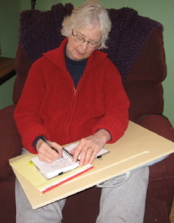 First, I realized that without the computer, my schedule could be changed. On the average day, I get up at 4:30, turn on the coffee, let the dogs out, and return to bed for an hour or so of reading. After breakfast, I go to my computer-- and I could begin writing at that moment.