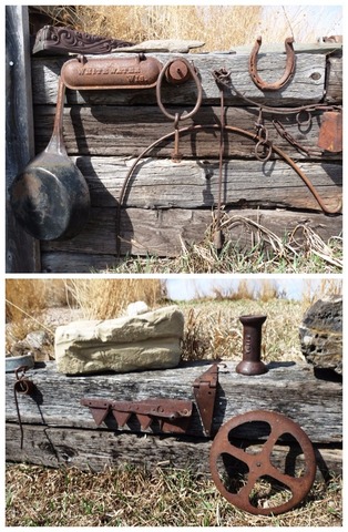 But for now, look at some of these tools rusting gently on the wall. Worn horse shoes testify to the miles walked by Bud and Beauty, the work team. Next to them are the ornate legs of stoves and washing machines that a woman may have noticed when they were new, but stopped noticing as she worked over them for years. Here are the hobbles we used to keep the wild range cows from kicking while we were milking them or persuading them to let their calves suck if they rejected their babies. Gears, hinges, pick heads, hand rakes and the teeth from the dump rake I hauled for miles behind my tractor picking up hay for my father to stack. Chains, pliers, and a couple of chain boomers, winches that we used for everything from fastening gates to hauling pickups out of the mud. Several pieces of iron are unidentifiable, swooping curves of metal with rings, probably part of a horse harness. Several wheels with broken teeth hang beside a couple of stirrups pulled apart when a rider long ago was caught in a disagreement with an unruly horse.