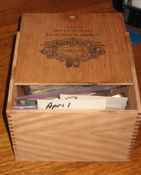 Sorting the seeds I have left, I arrange them in my wooden seed box by the date I’ll plant them-- from a few weeks before our last average frost date of May 24-- and make notes on the seeds I need to buy, before tucking the seed box in my freezer. I’ve had good luck saving radish, pea and bean seed this way so I can buy bargain seed when I see it and count on a pretty good sprouting rate for several years.